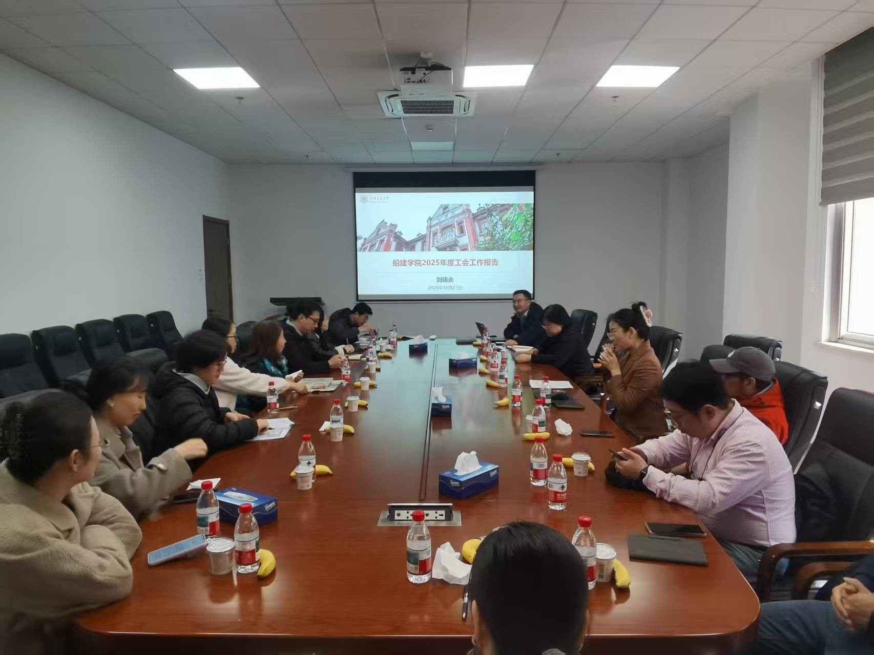 11月27日中午,船建学院2025年度工会工作会议在木兰楼B221会议室召开。工会主席刘铸永汇报2025年工会工作,福利委员庞红犁解读"十必访"制度,工会委员及各工会小组长参会并现场交流。